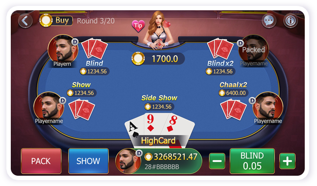 The game 2-5 players involved with 52 poker cards (without jokers).The best3-card owner win the game.